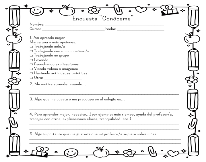 La Encuesta “Conóceme” es una estrategia pedagógica diseñada para recoger información relevante sobre los estudiantes de manera rápida, respetuosa y sin presión evaluativa.